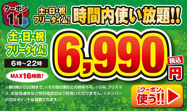 当店が定める特別期間中(年末年始・お盆期間・GW等)は利用不可。
